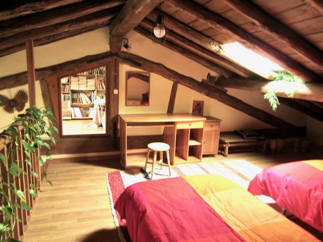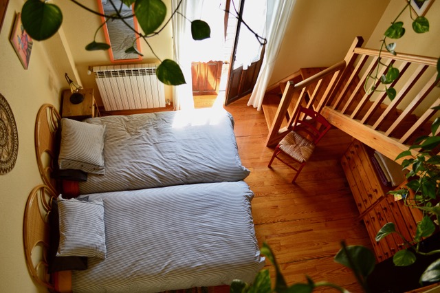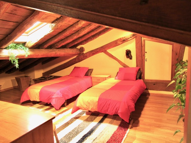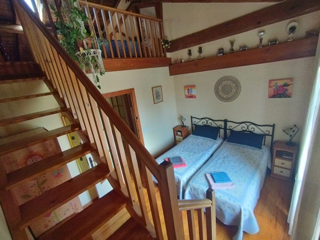 - Una habitación cuádruple (cama de matrimonio y litera con dos camas de 90cm), una habitacion doble con cama de matrimonio,y otra habitación doble con dos camas de 90cm con acceso a la biblioteca de la casa donde hay 4 camas individuales.