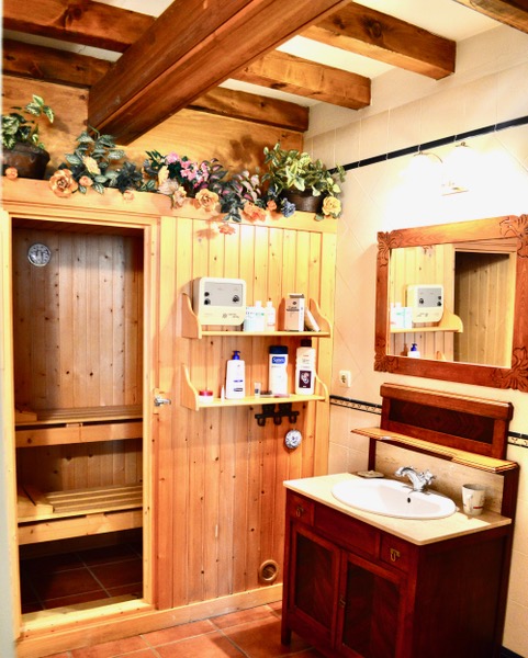 - Dos baños completos, uno de ellos con sauna incluida, y el otro baño adaptado para silla de ruedas.
